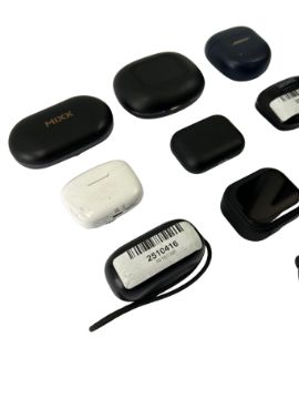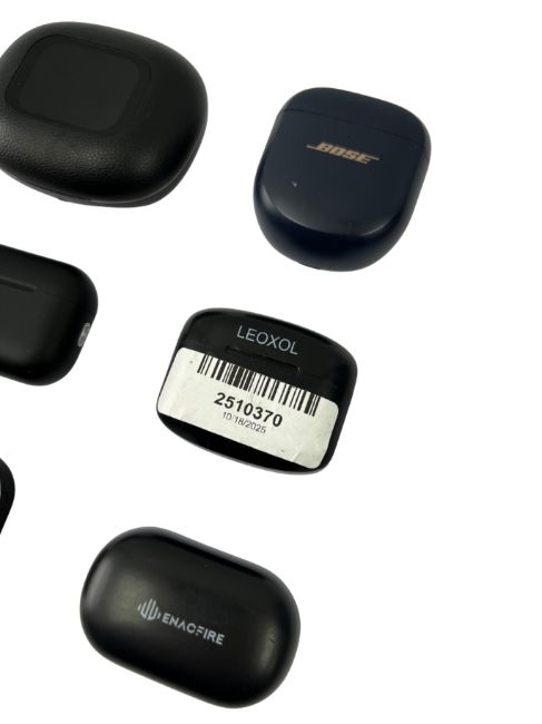 Assorted pre-owned wireless earphones and cases including Bose, HTC & JBL.