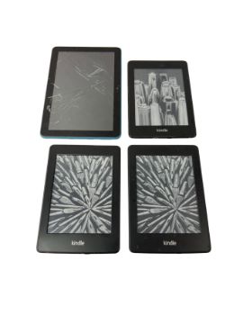 Three pre-owned Amazon Kindle E-Readers & an Amazon Fire Tablet (Factory reset, sold as is).
