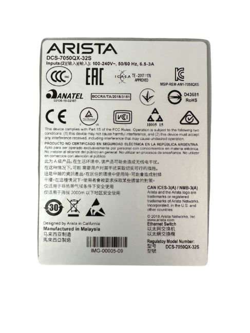 Two pre-owned Arista 7050QX-32S 32-Port 40GbE QSFP+ Network Switches (DCS-7050QX-32S-R) with 4 x 495W PSUs (PWR-00159-04) & 8 x Fan Modules (FAN-7000-R) (Sold as is)