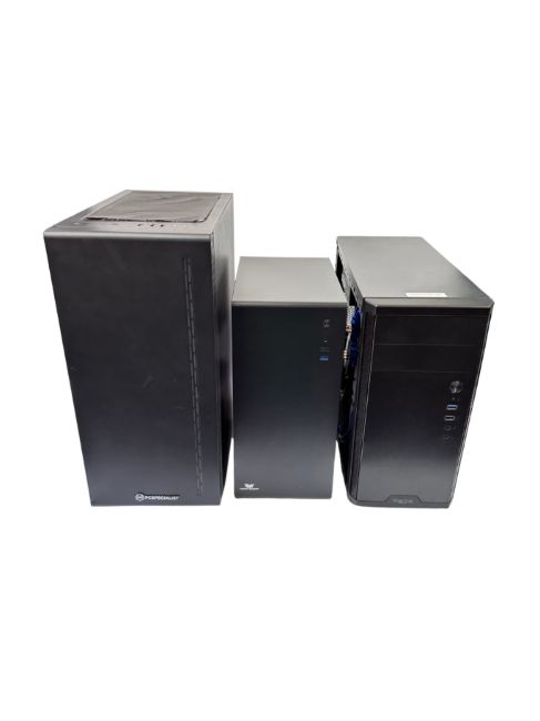 Three pre-owned PC's sold for parts (No SSD/HDD. Sold as is for parts only).