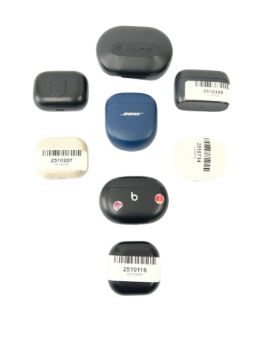 Assorted pre-owned wireless earphones and cases including Beats and Bose (Sold as is).