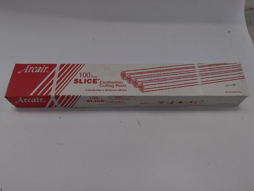 As new pack of 100 Arcair Slice Exothermic cutting rods 43-049-003 uncoated 6.5mm x 559mmm (¼" x 22").