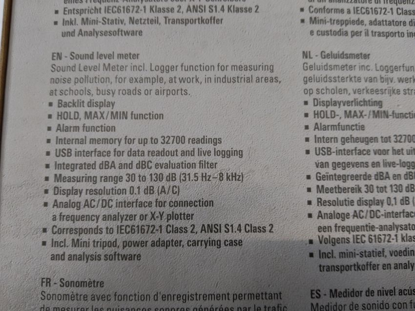 As new Trotec SL400 sound level meter with mini tripod, power adaptor, carrying case and analysis software.