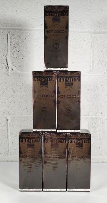 Six Organo Premium Gourmet Hot Cocoas packs, 480g/15 sachets per pack (some minor creasing/damage to packaging).