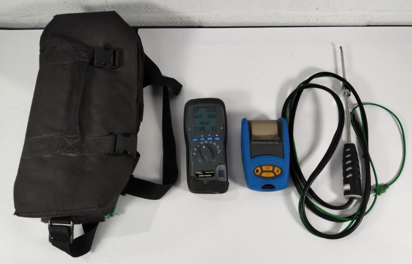 A pre-owned Regin REGXA455 premier ulti-mate flue gas analyser unit, with printer and Kane KMCP2 probe for testing and servicing heating appliances in worn carry case. (no charger)