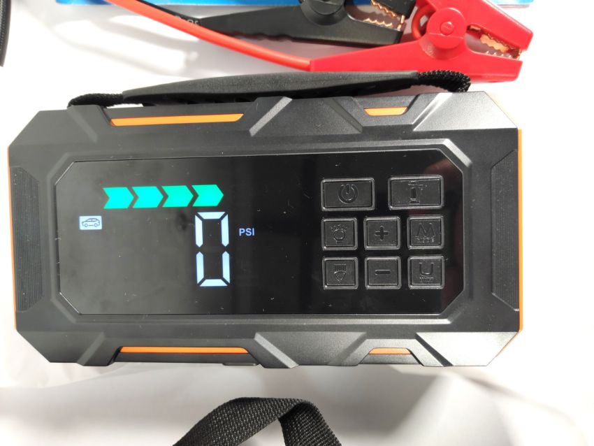 A Trekure TK20 14-in-1 portable 12V emergency multifunctional jump starter and power bank, capacity 26800mAh, slight rip to storage case.