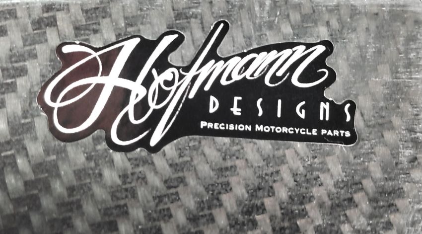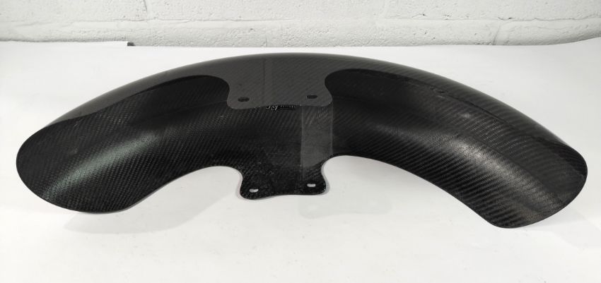 A Hofmann-Designs carbon Fiber high gloss finish motorbike front fender (possible Harley Davidson fitment - model unknown)