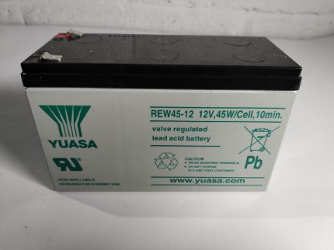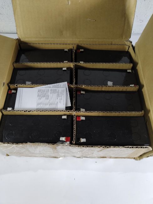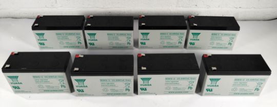 Eight Yuasa valve regulated sealed lead acid batteries. Box opened (REW45-12 (NT-3B-1).