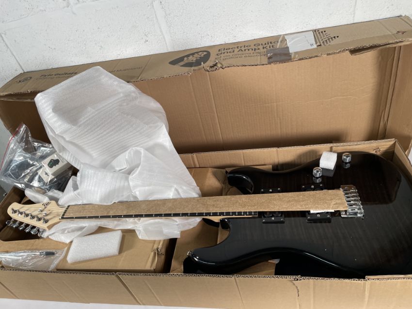 An as new Pyle 6-String Electric Guitar Kit PEGKT99BK (Includes amplifier with accessory kit).