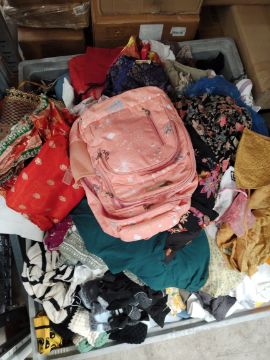 A quantity of assorted pre-owned clothing and related (stillage not included).