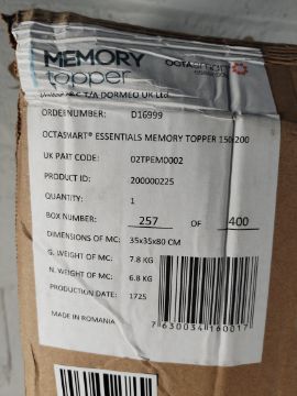 An as new OctaSmart Essentials memory topper, 150x200 (EAN: 7630034160017).