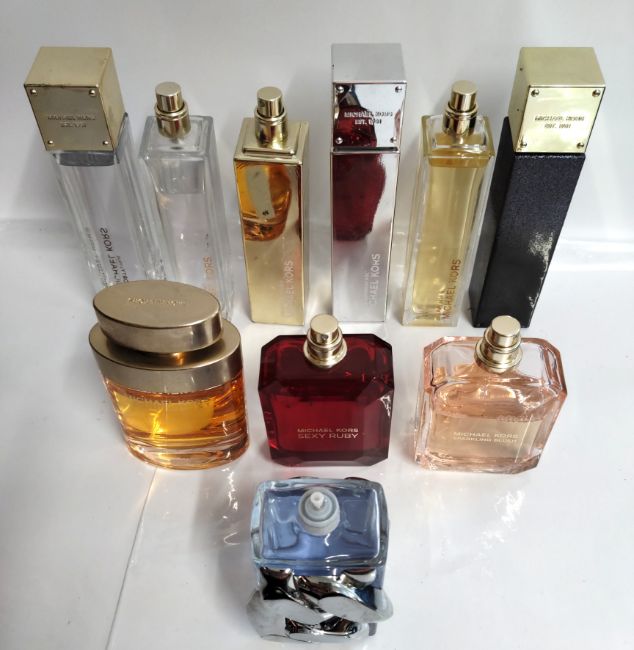 Forty five Michael Kors perfumes/testers and related (please note: bottles may have been used/packaging may have damage/missing spray tops or lids).