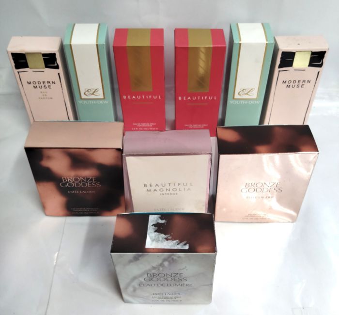 Thirty five Estee Lauder perfumes/testers and related (please note: bottles may have been used/packaging may have damage/missing spray tops or lids).