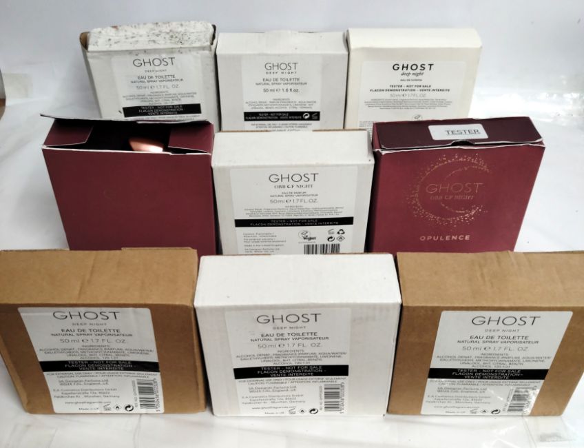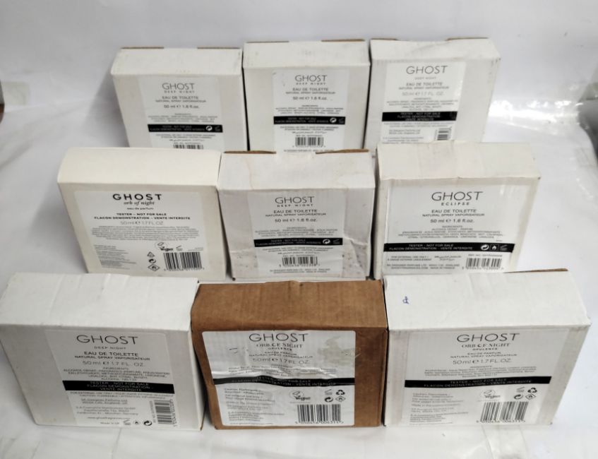 Forty Ghost perfumes/testers and related (please note: bottles may have been used/packaging may have damage/missing spray tops or lids).
