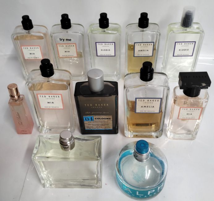 Thirty five perfumes/testers and related to include Ted Baker and Ralph Lauren (please note: bottles may have been used/packaging may have damage/missing spray tops or lids).