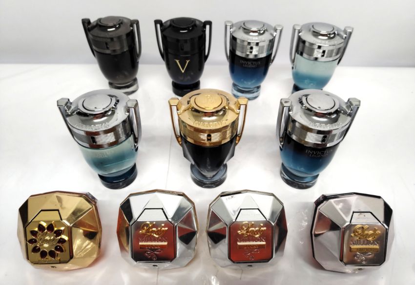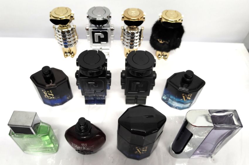 Forty Paco Rabanne perfumes/testers and related (please note: bottles may have been used/packaging may have damage/missing spray tops or lids).