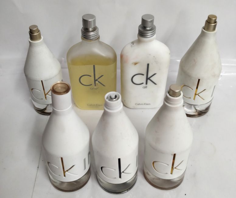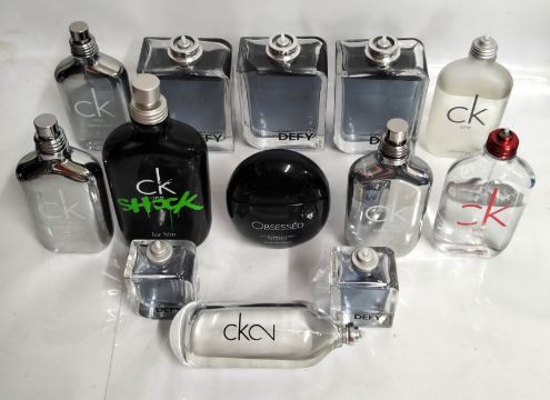 Forty Calvin Klein perfumes/testers and related (please note: bottles may have been used/packaging may have damage/missing spray tops or lids).