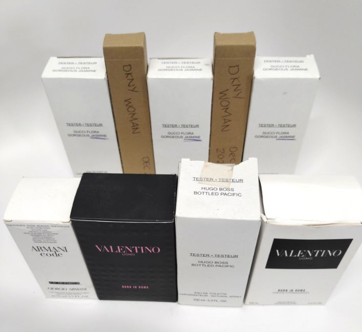 Forty six perfumes/testers and related to include Boss, Issy Miyake, Marc Jacobs, Gucci, boxed (please note: some bottles may have been used/packaging may have damage/missing spray tops or lids).