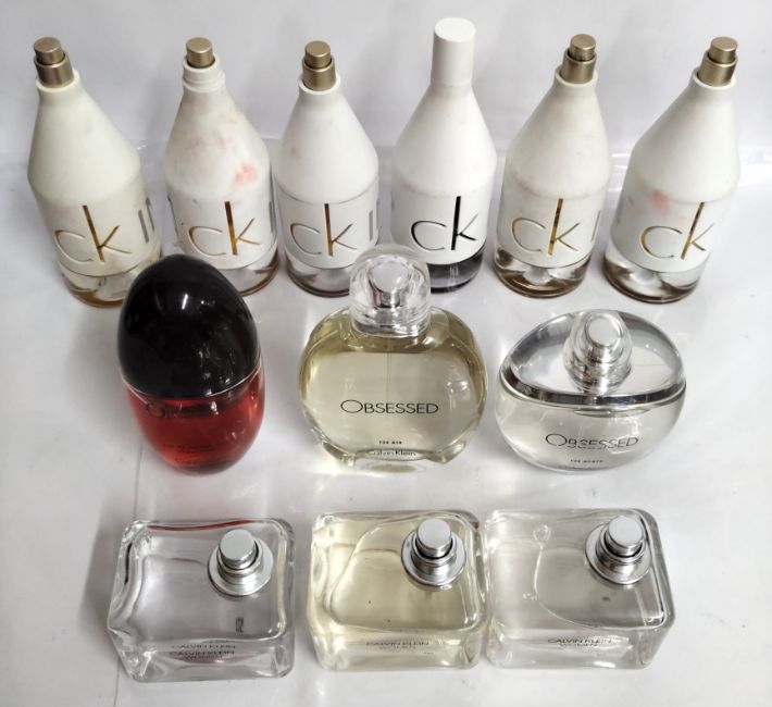 Forty Calvin Klein perfumes/testers and related (please note: bottles may have been used/packaging may have damage/missing spray tops or lids).