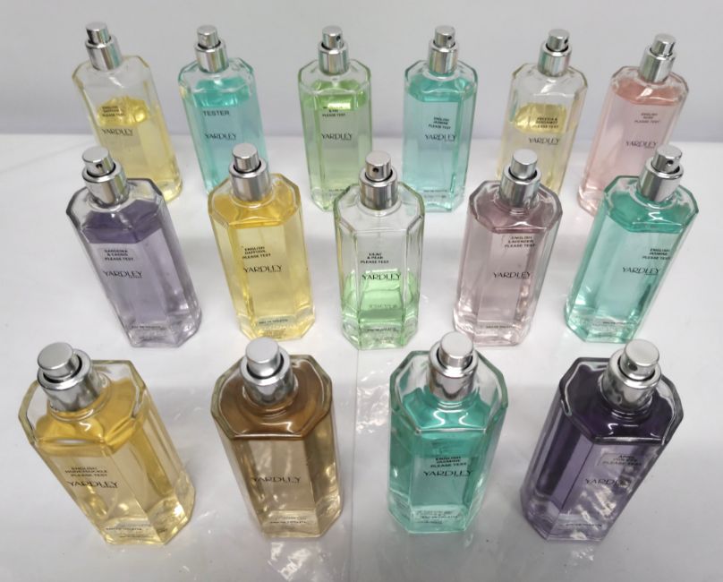 Forty seven Yardley perfumes/testers and related (please note: bottles may have been used/packaging may have damage/missing spray tops or lids).