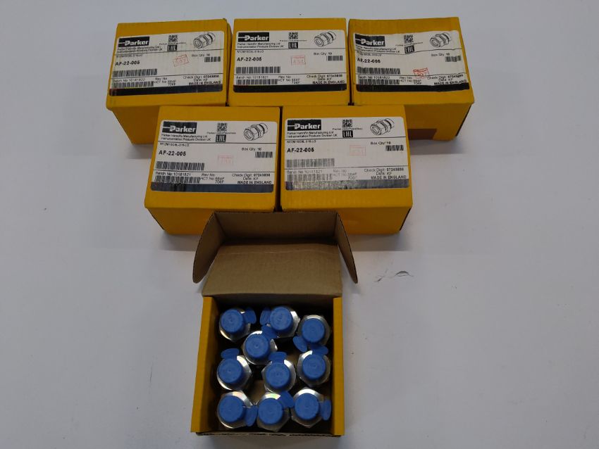Six as new boxes of Parker Hafflin tube pipe fittings M15M1SC6L-316-LO AF-22-005. Pack size 10 per box.